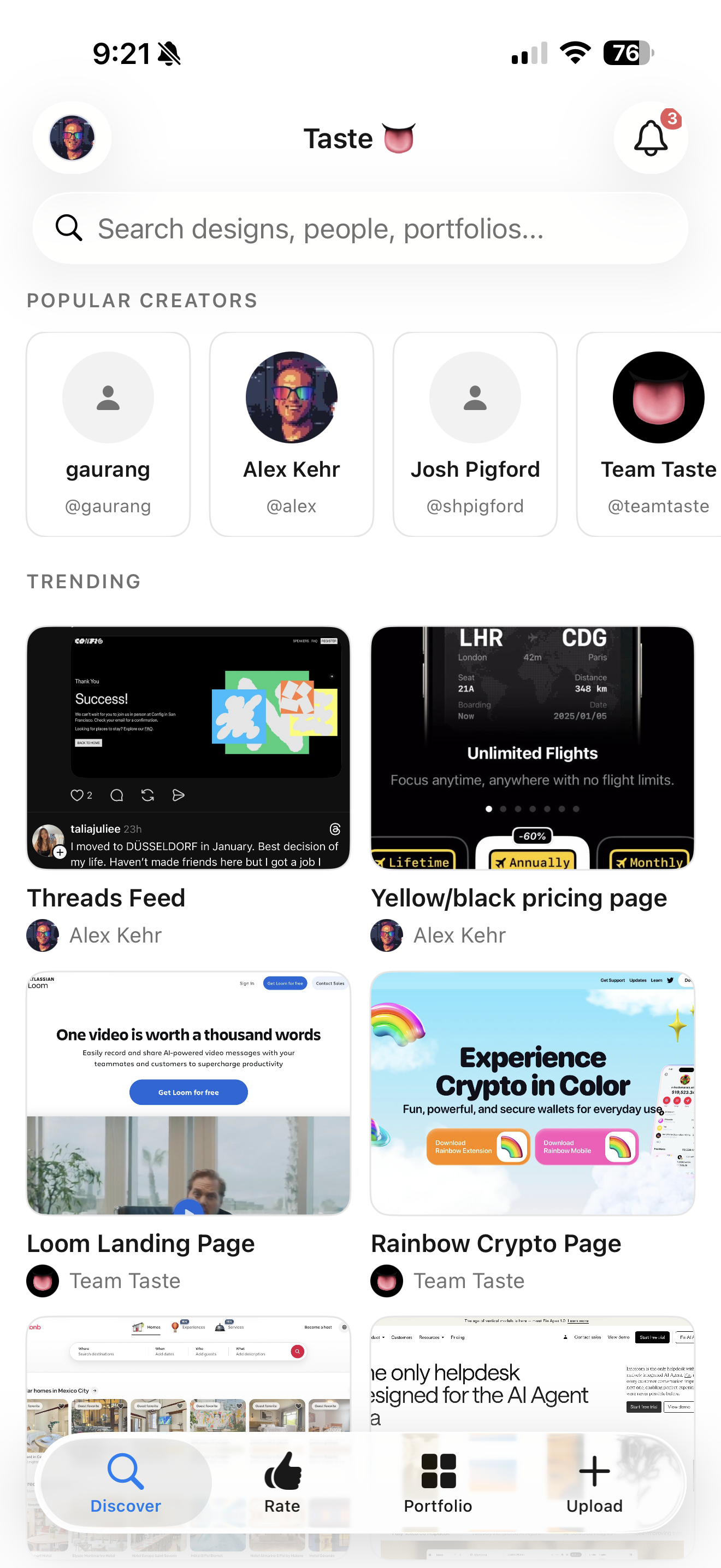 Upload screenshots, rate community designs, and browse your library — all from your iPhone.