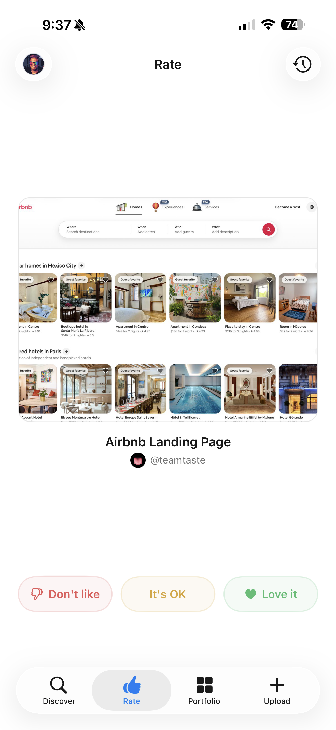 Screenshot anything on your phone, then upload it to Taste with a tap. Pick a category, add a note about why you like it, and AI does the rest.
